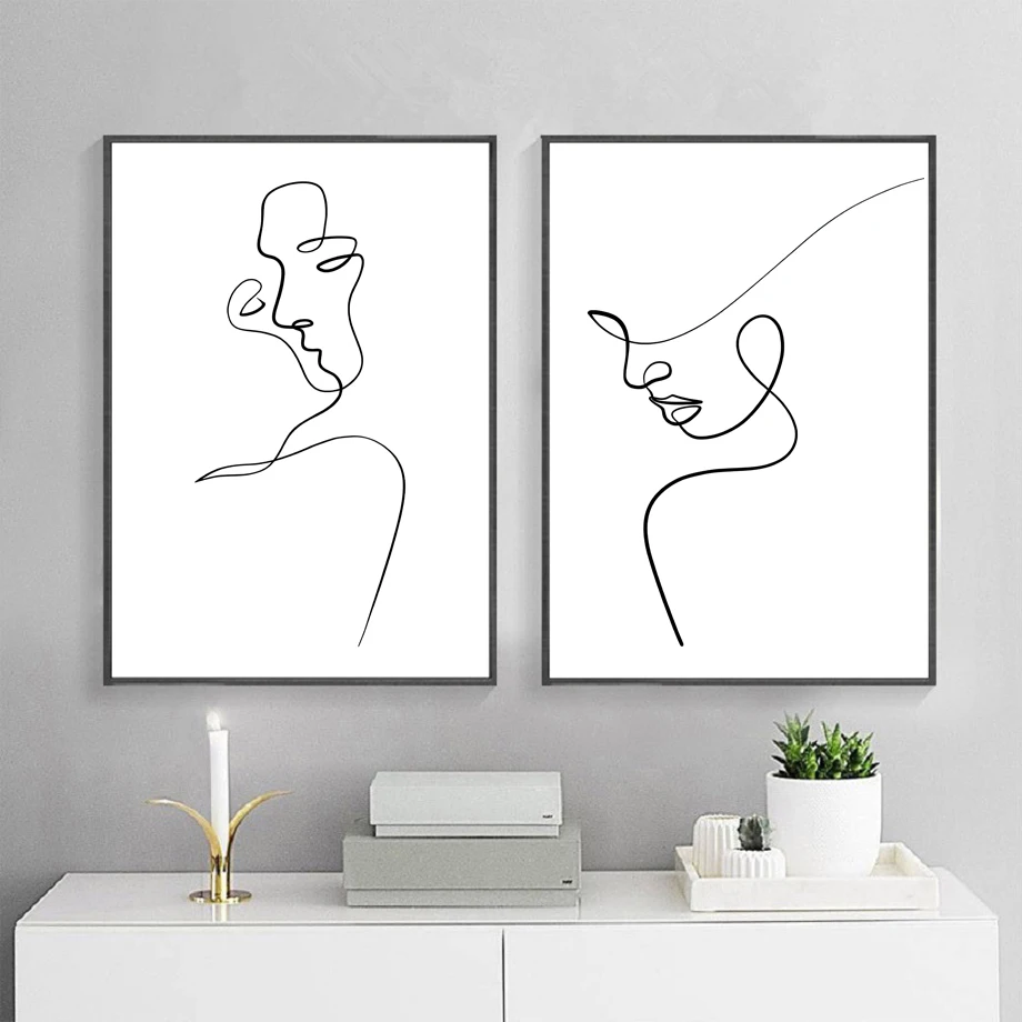 Абстрактная линия лица женщины двойная настенная Картина на холсте ...