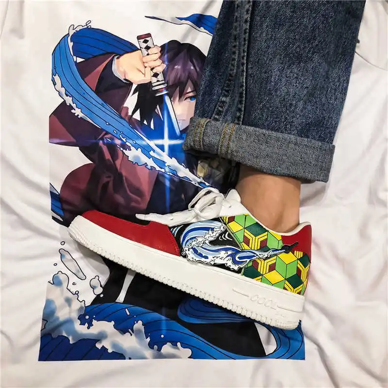 Кроссовки Tanjirou для мужчин и женщин, повседневная обувь с аниме рассекающий демонов, для школы и активного отдыха, Модные кеды в стиле хип-хоп, обувь для бега