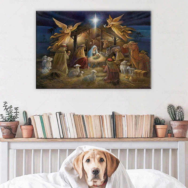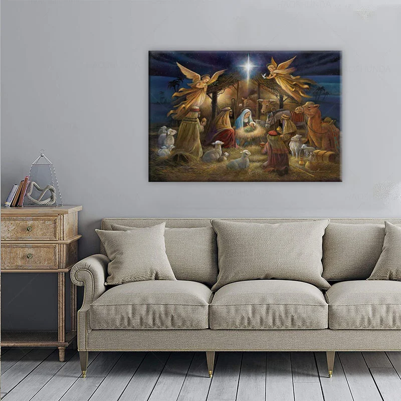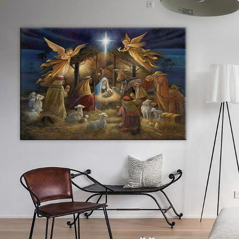 Пейзаж Рождества Христос в Кормушке Иисус Христос Мария Иосиф