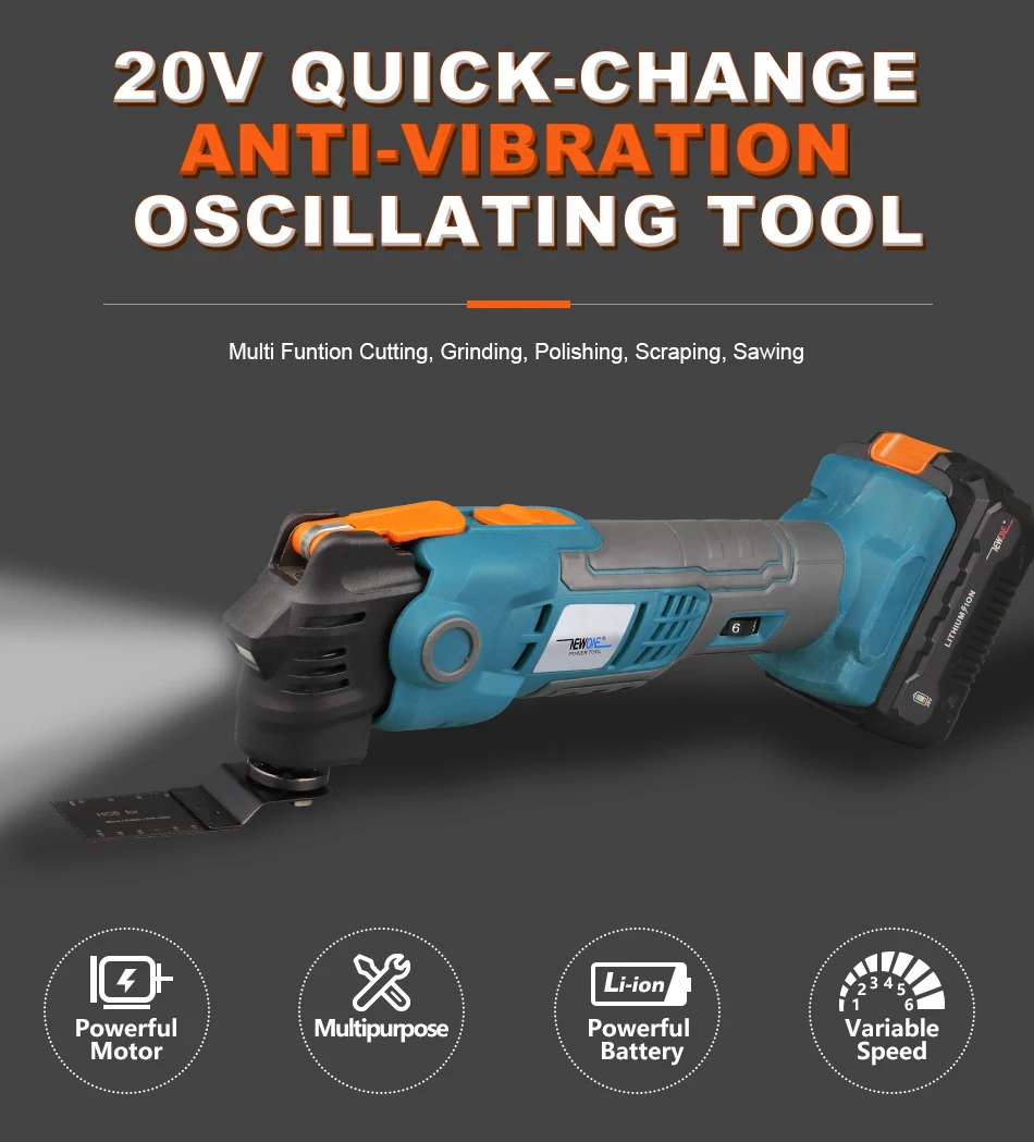 Быстросъемный Осциллирующий мультиинструмент 20 в, антивибрационный триммер с переменной скоростью, Реноватор, электрическая пила с комплектом пил NEWONE