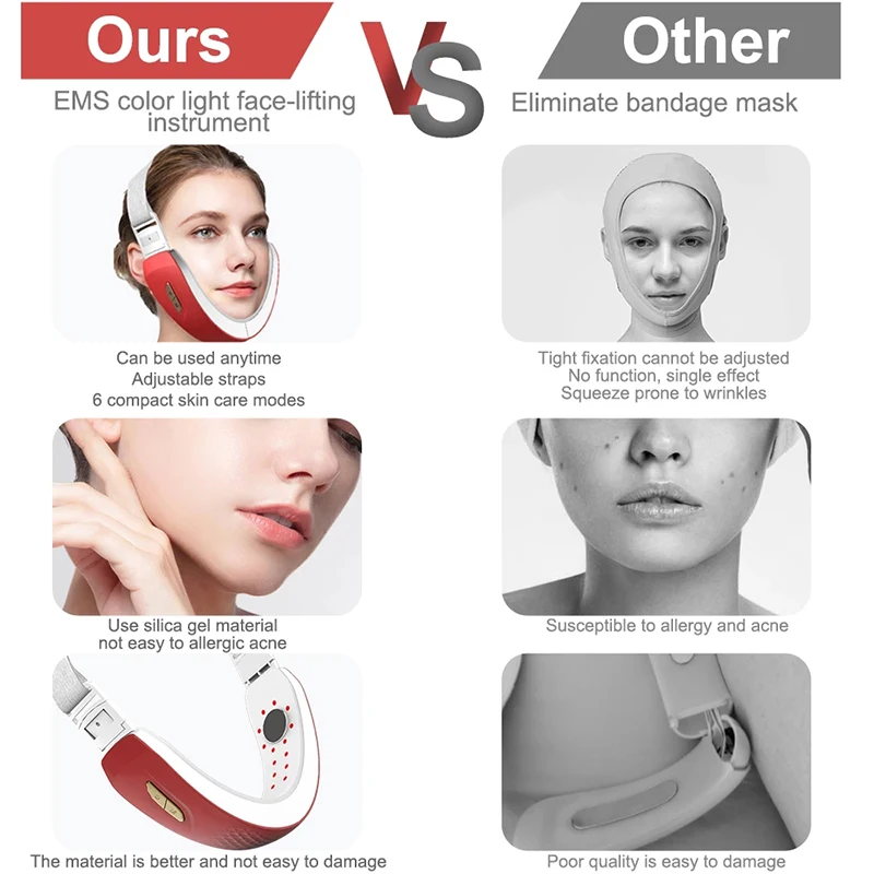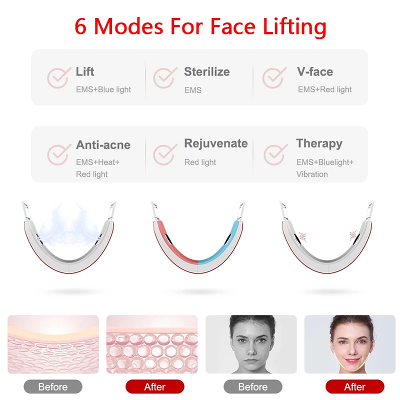 Устройство для красоты лица Badinono, подтяжка для подтяжки кожи, укрепляющий подбородок, с синими светодиодами, фотоновая терапия