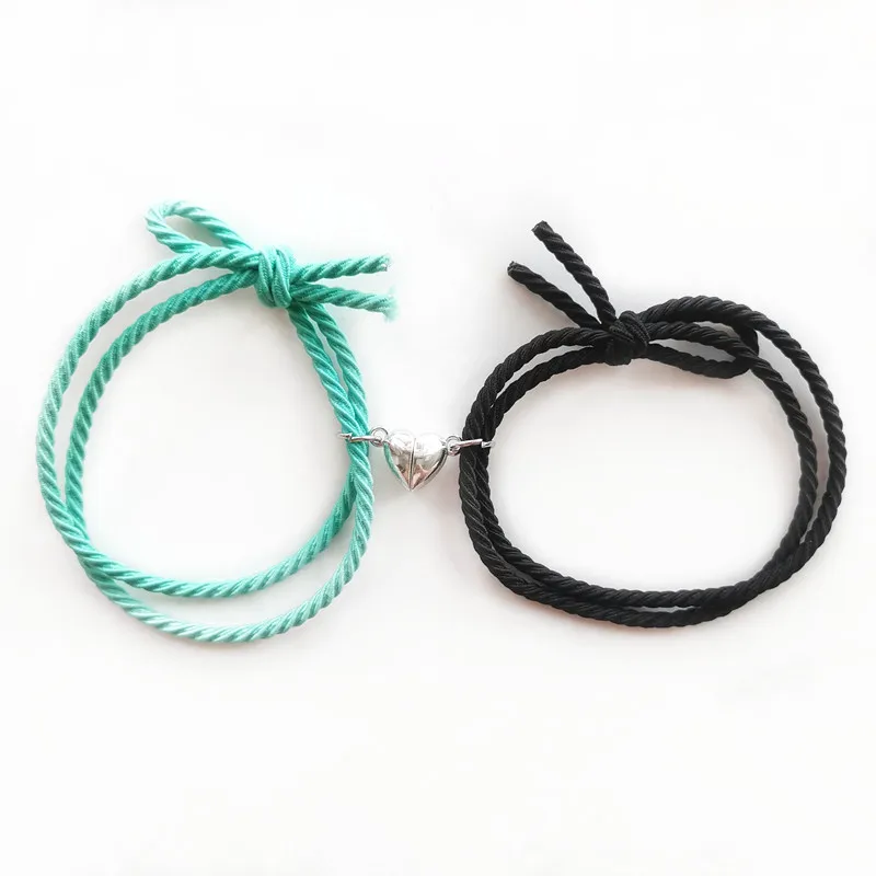 Браслеты из нержавеющей стали для пар, 2 шт., плетеные веревочные браслеты, подвеска в виде сердца, шарм, магнитный браслет для женщин и мужчин