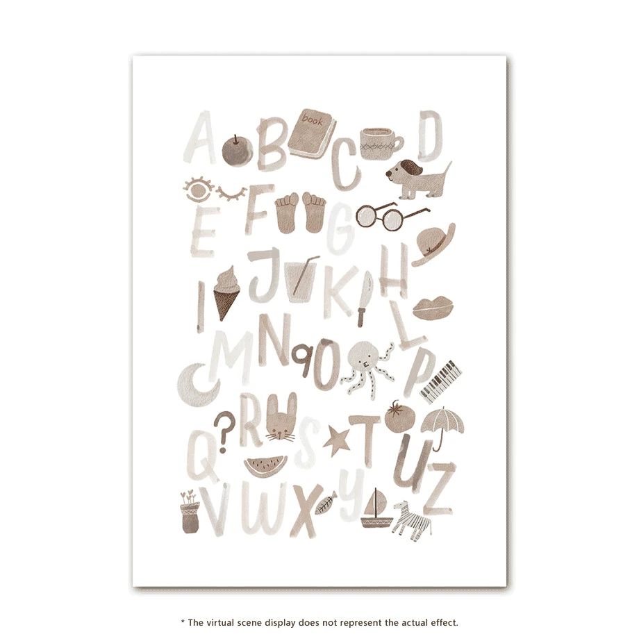 Мультяшный алфавит, цифры, обучение, настенная печать, бумага, холс...