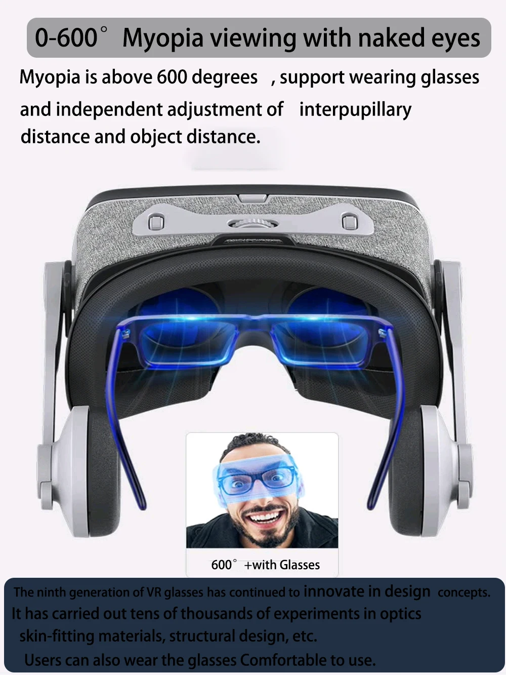1,0-600 ° близорукость с открытыми глазами, близорукость выше 600 градусов, поддержка в очках и независимая Регулировка интерпупиллярного расстояния и расстояния объекта.