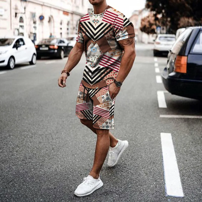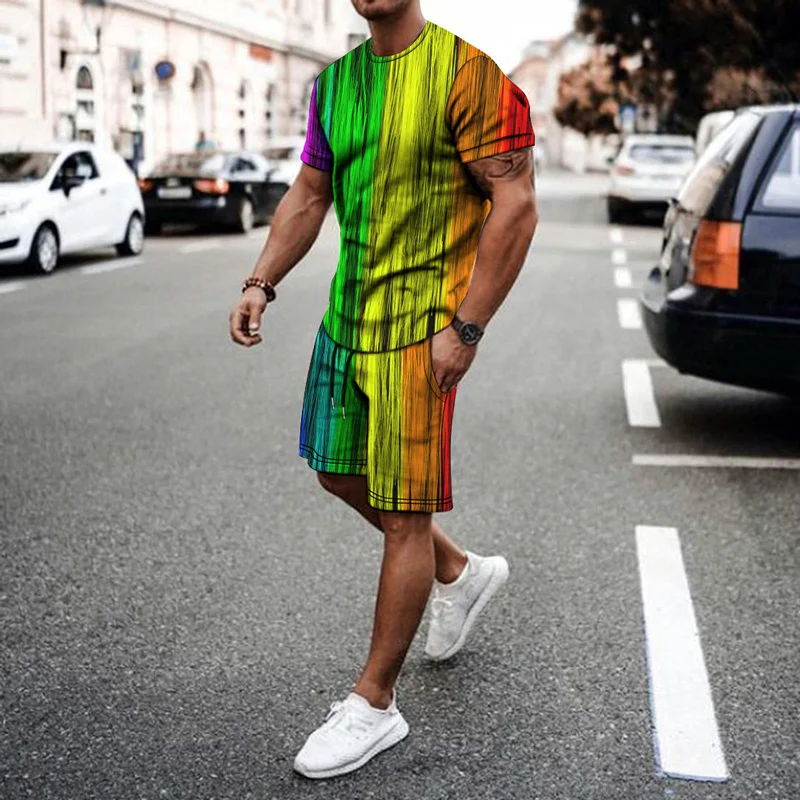 Мужской спортивный костюм из футболки с коротким рукавом и шортов
