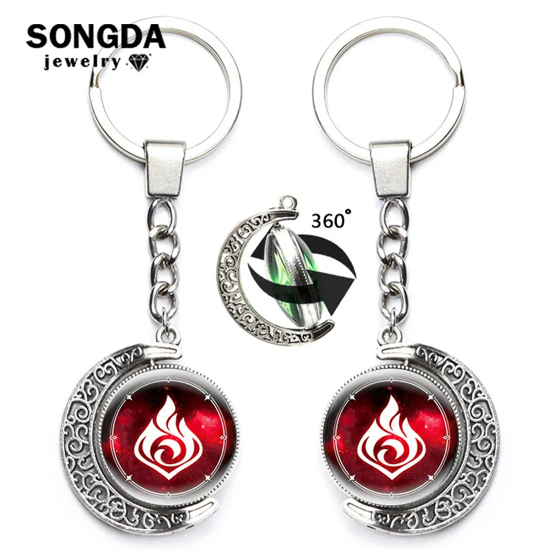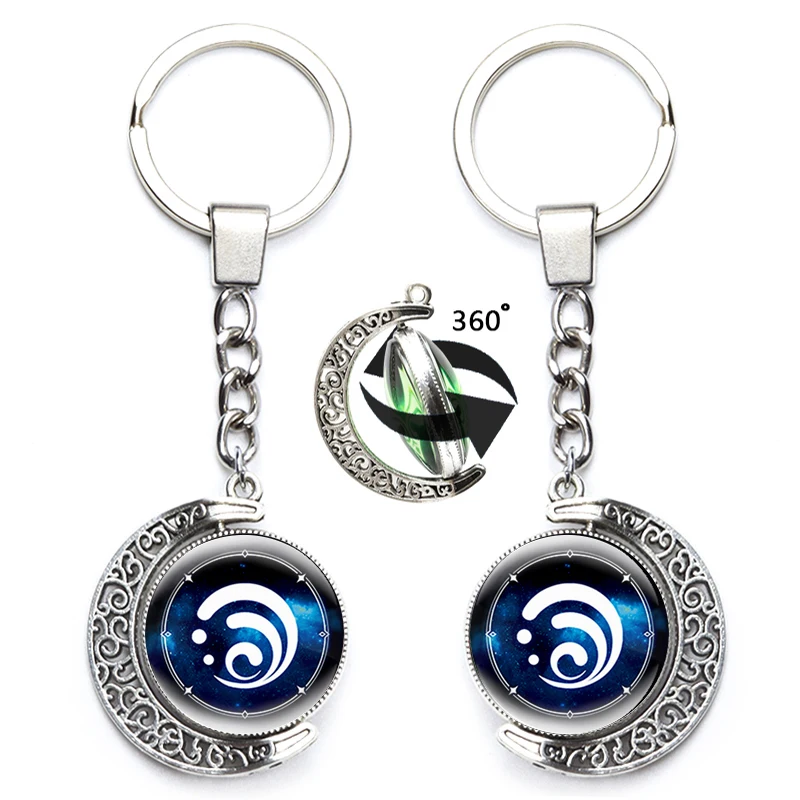 Брелок Genshin Impact с вращением на 360 градусов, металлический брелок с подвеской глаз Бога, 7 элементов, оружие, луна, ювелирные изделия для мужчин, женщин, детей