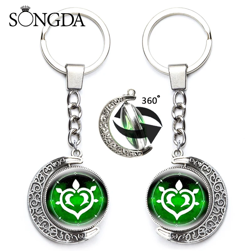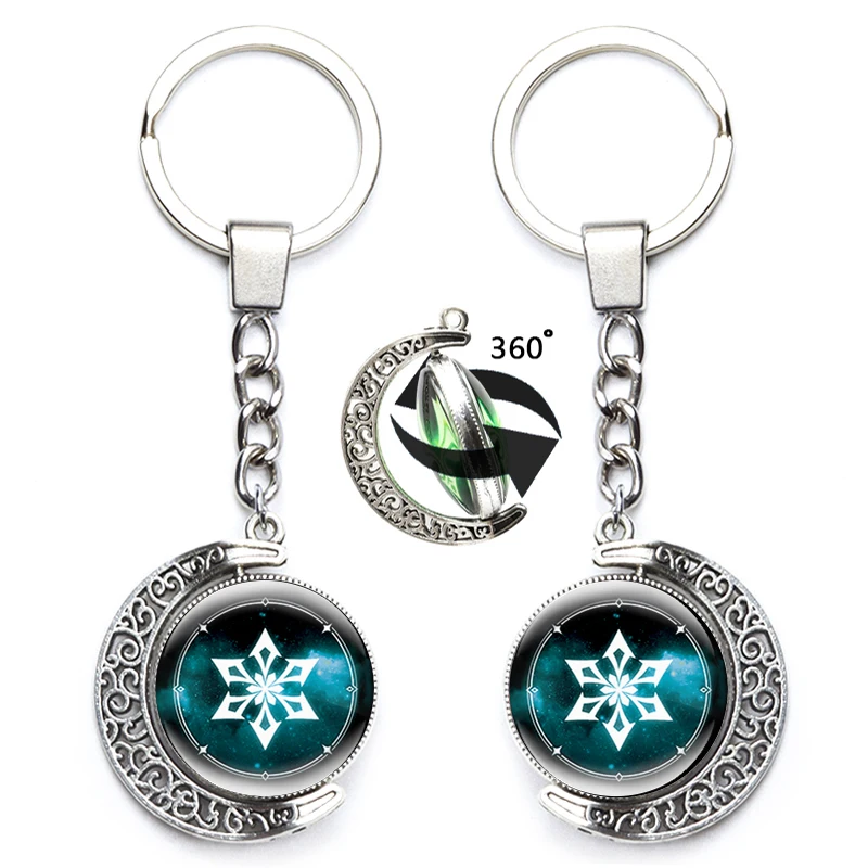 Брелок Genshin Impact, поворот на 360 градусов, лунный глаз Бога, 7Ele мужской t, двусторонний брелок для женщин и мужчин, крутая бижутерия для косплея, подарок