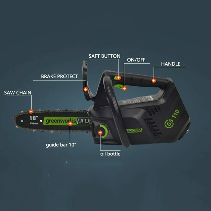 Беспроводная цепная пила Greenworks 40 в, бесщеточная бензопила с о...