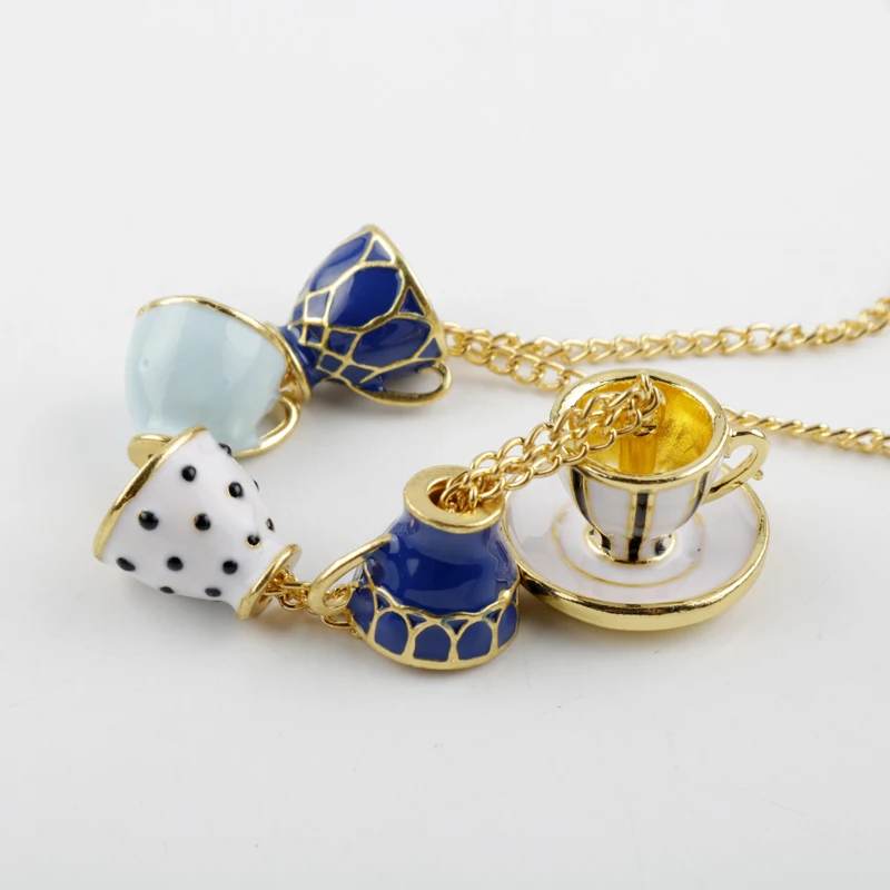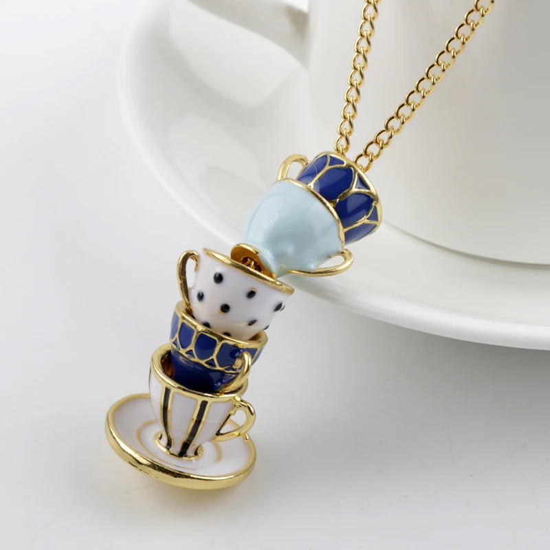 Новое модное ожерелье с подвеской в виде чайной чашки, модные эмалированные аксессуары для женщин и девушек
