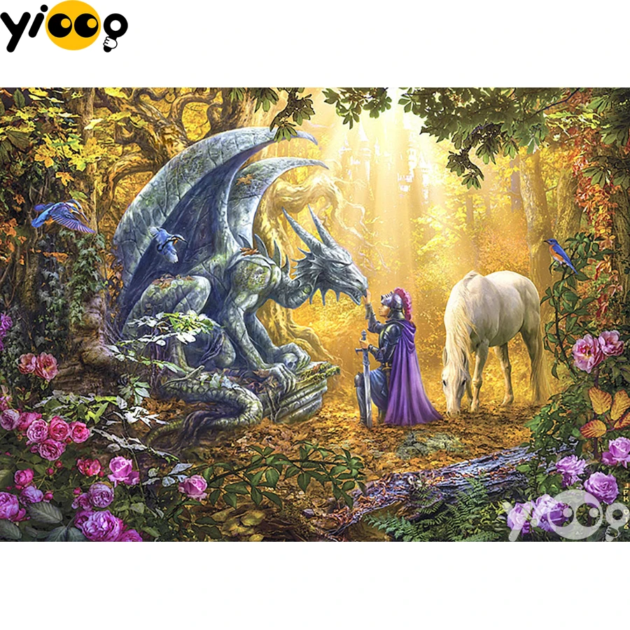 Полноразмерная квадратнаякруглая Алмазная вышивка, рыцарь в лесу, 5D алмазная бриллиант, семейный декор, подарок BX2647