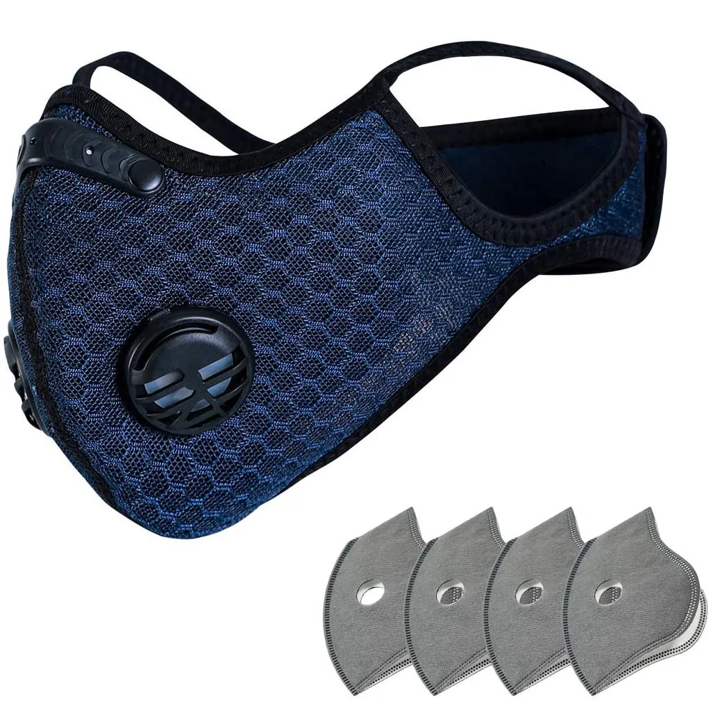 Маска для лица с 4 фильтрами из активированного угля PM 2,5, пылезащитная с 4 фильтрами