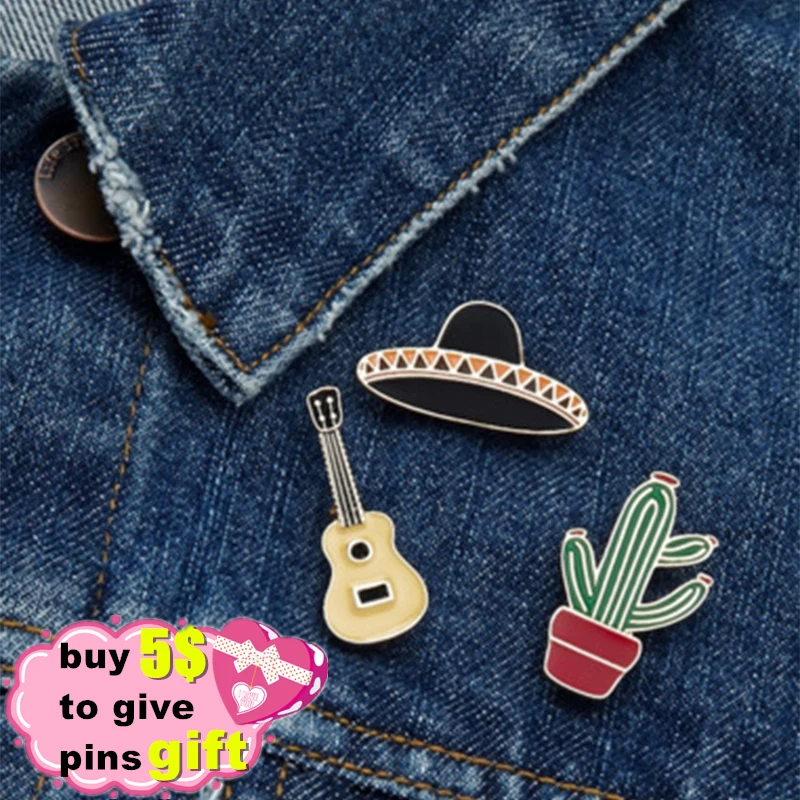 3 шт.компл. броши в горшке с изображением шляпы гитары кактуса растения джинсовая заколка для лацкана Пряжка значок мультяшное ювелирное изделие подарок для детей друзей оптовая продажа