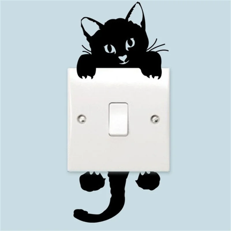 Интересные черные наклейки для кошек, переключатель, Мультяшные вин...