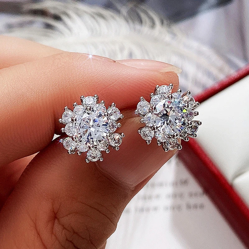 Роскошные серьги-гвоздики в виде снежинки с кристаллами из циркона для женских цветов, характерные ювелирные изделия в подарок