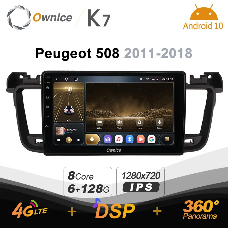 Автомобильное радио Ownice K7 6G + 128G Ownice Android 10,0 для Peugeot 508 2011 - 2018 GPS 2din 4G LTE 5G Wifi Авторадио 360 SPDIF без DVD