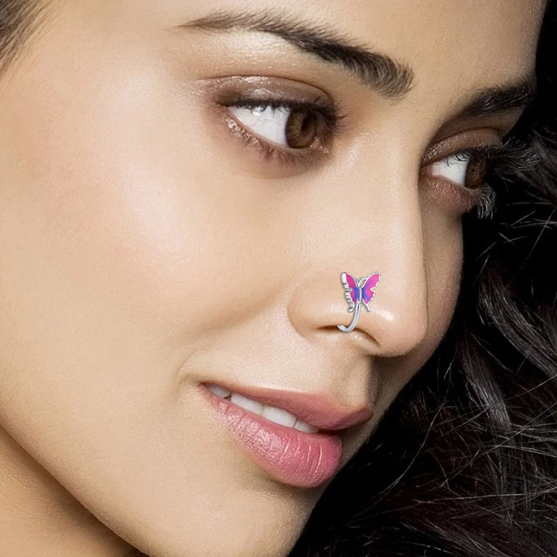Кольцо Goth для имитации пирсинга носа с медной проволокой и бабочкой, кольцо с клипсой серебристого цвета в стиле панк для носа и уха, милые Винтажные Украшения для тела