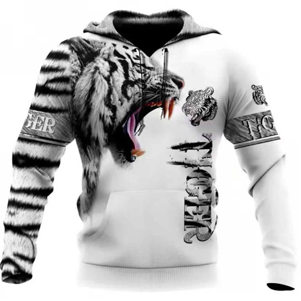 Весенняя крутая 3D Толстовка с изображением белого тигра, мужская в...