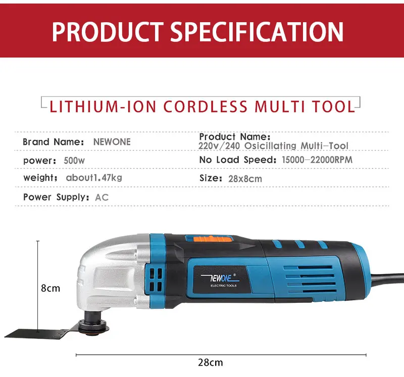 Осциллирующий Инструмент NEWONE, 230 В, 500 Вт, Осциллирующий многофункциональный инструмент с лезвиями пилы, регулируемая скорость, инструмент для ремонта триммера