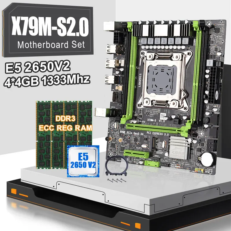 Стандартный набор для замены данных с LGA2011, комбинированный процессор Xeon E5 2650V2, 4 шт. X 4 ГБ = 16 ГБ, оперативная память DDR3, 1333 МГц, до 128 ГБ, NVME M.2