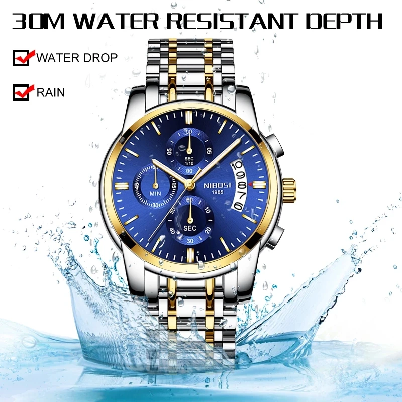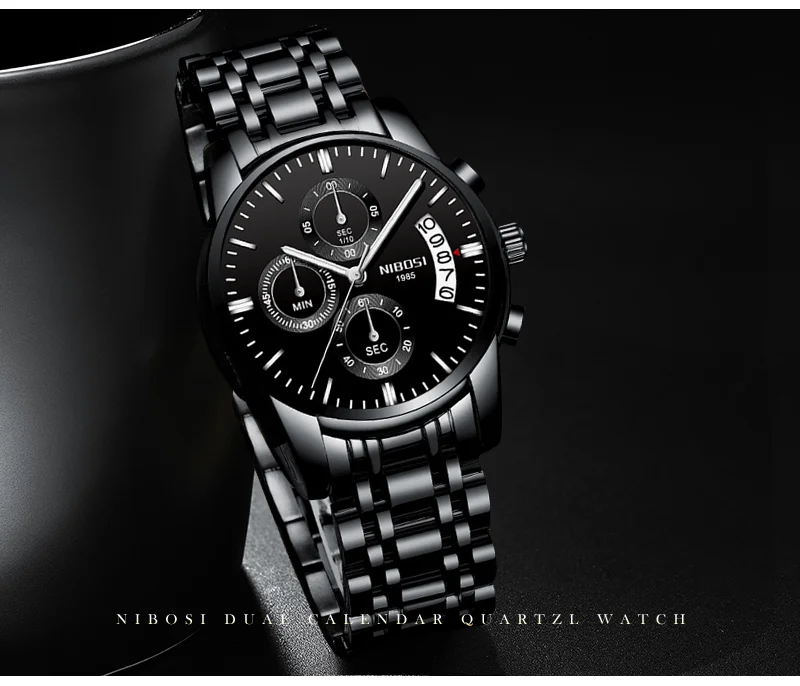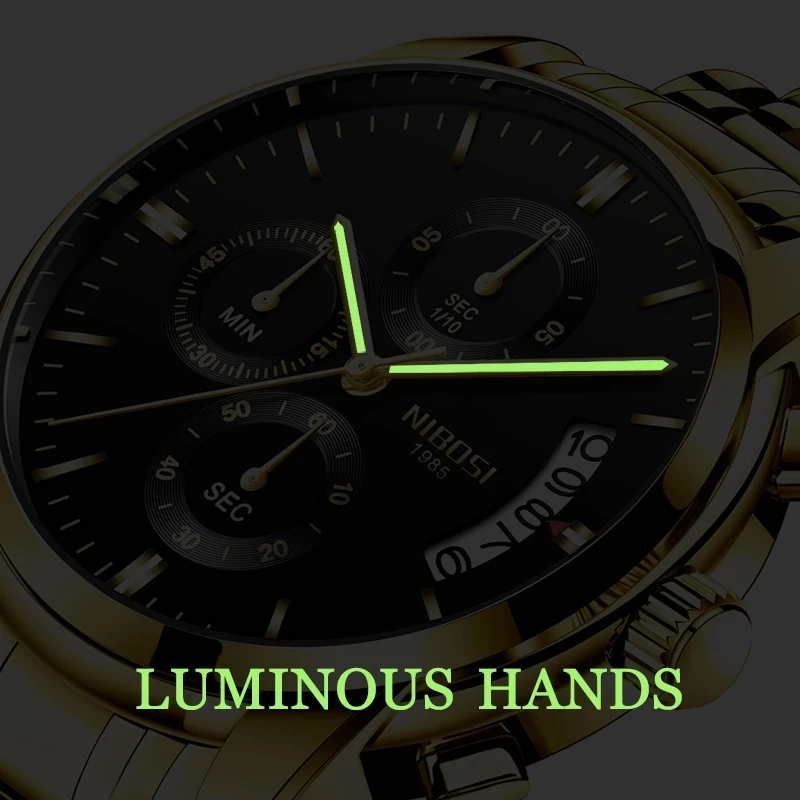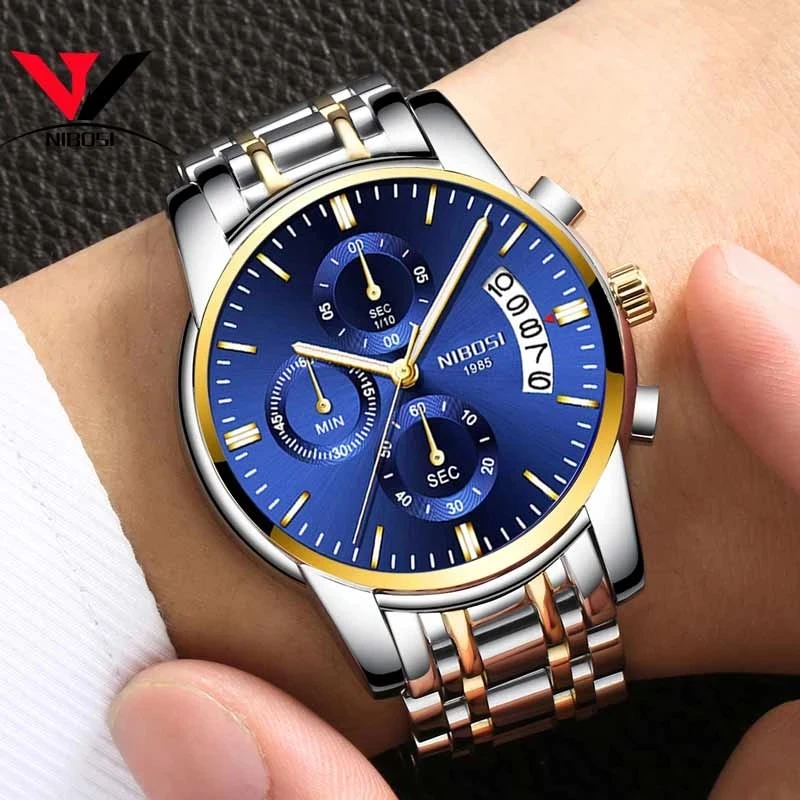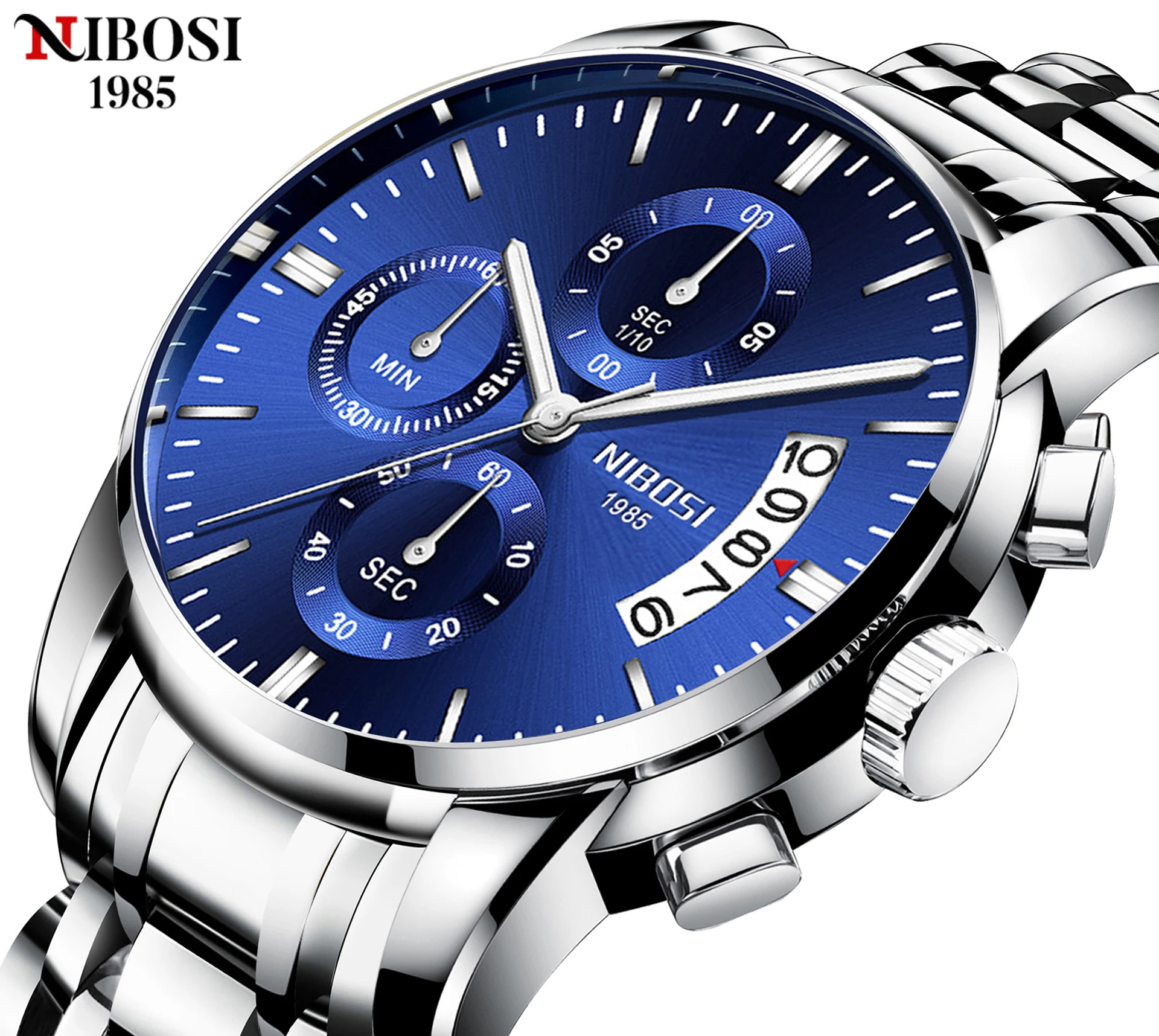 Часы наручные NIBOSI Мужские кварцевые, роскошные спортивные брендовые водонепроницаемые с хронографом, 2021