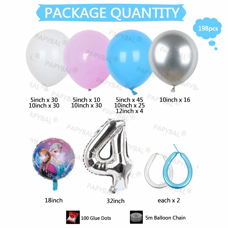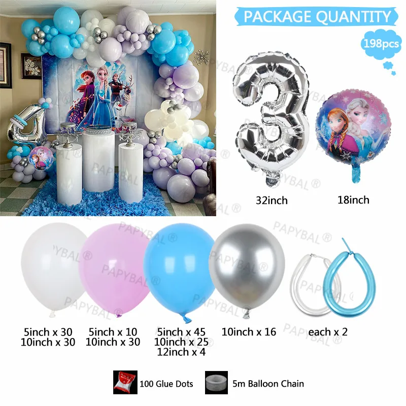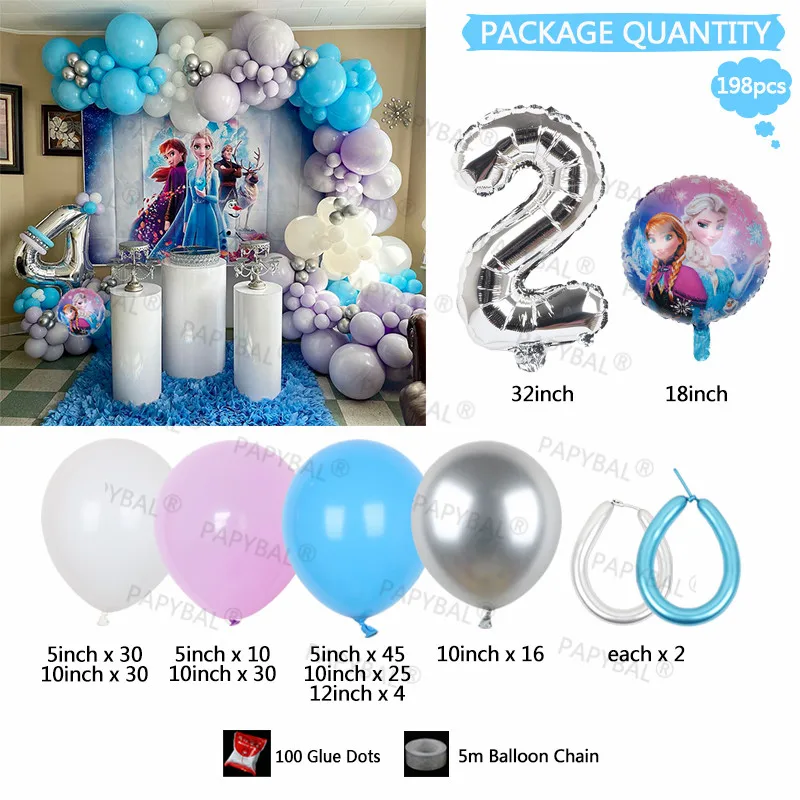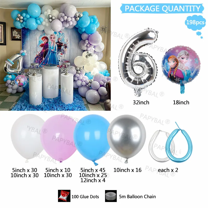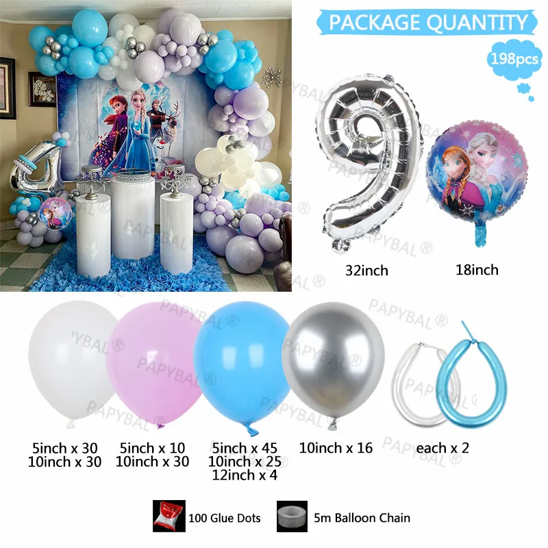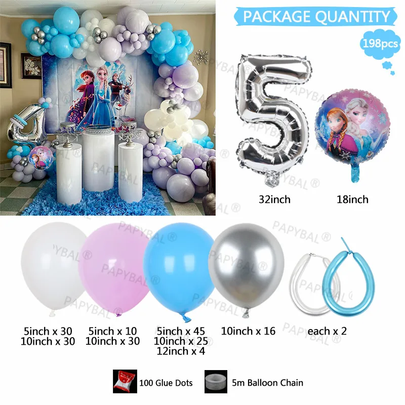 198 шт Дисней День рождения воздушные шары-гирлянды арочный комплект Эльза Анна Волшебная принцесса фольга Воздушные шары 32 "номер воздуха Globos поставки детский подарок