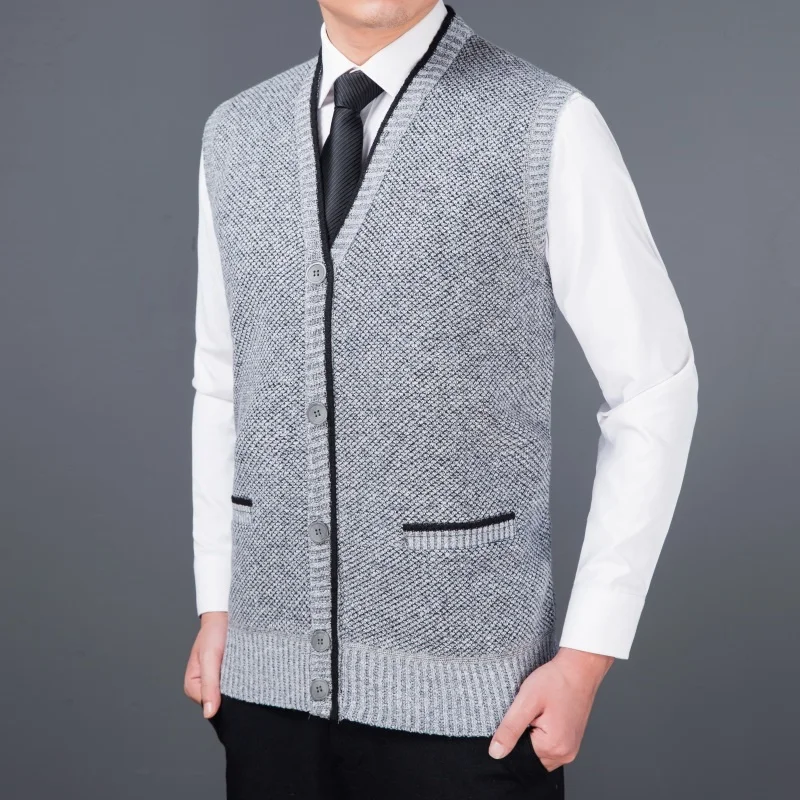 Жилет Мужской трикотажный с V-образным вырезом, Приталенный джемпер...