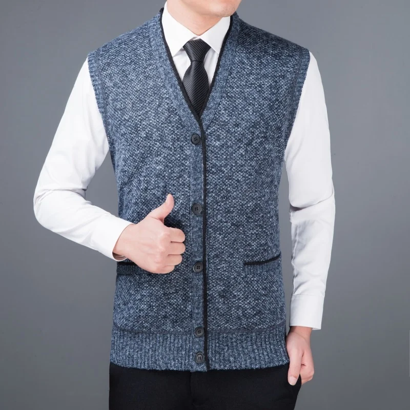 Мужской трикотажный свитер без рукавов, с V-образным вырезом
