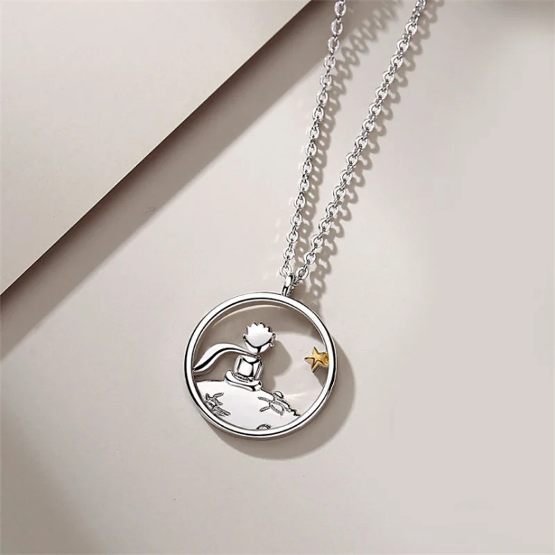 Новинка 2021, модное двухцветное ожерелье с кулоном из серебра пробы в виде маленького принца и лисы, изысканная Роскошная цепочка до ключиц, ювелирные изделия