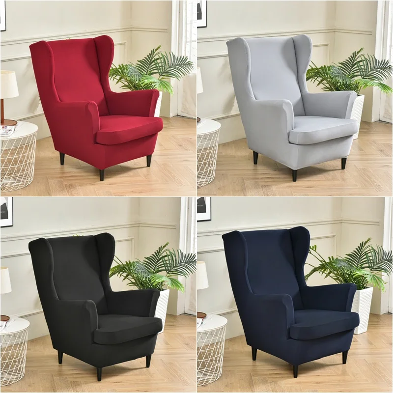 Однотонный чехол на стул с крыльями, эластичные чехлы на стулья из полиэстера, скандинавские съемные чехлы для дивана, чехлы для подушек на сиденья
