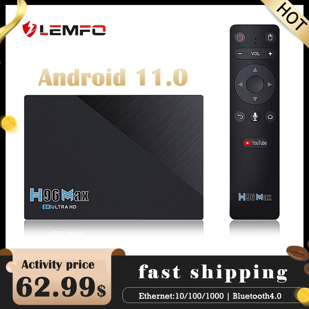 Приставка Смарт-ТВ H96 MAX RK3566, Bluetooth, Android 11, 8 + 64 ГБ, 1080p, 8K