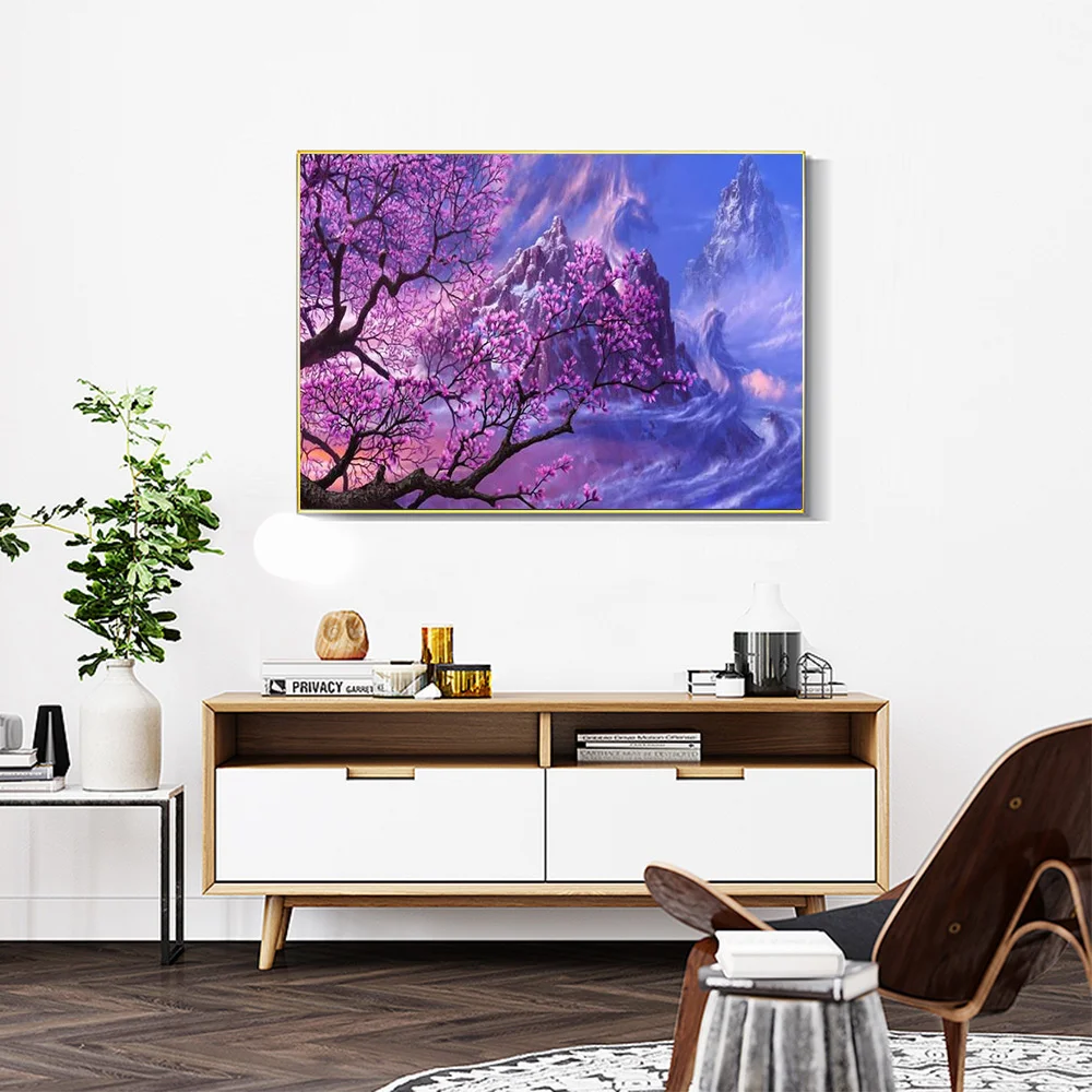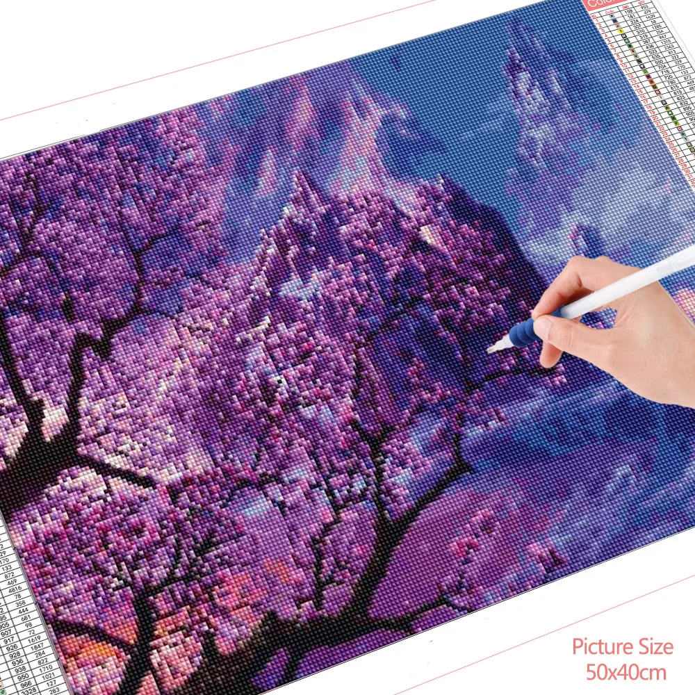 Алмазная 5d картина HUACAN сделай сам, мозаика с изображением гор, цветков вишни, вышивка, цветочный ландшафт, домашний декор