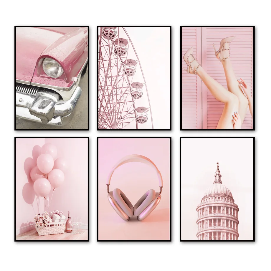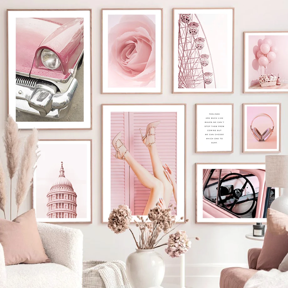 Розовый Париж башня подоконник цветок Автомобиль Велосипед скандина...