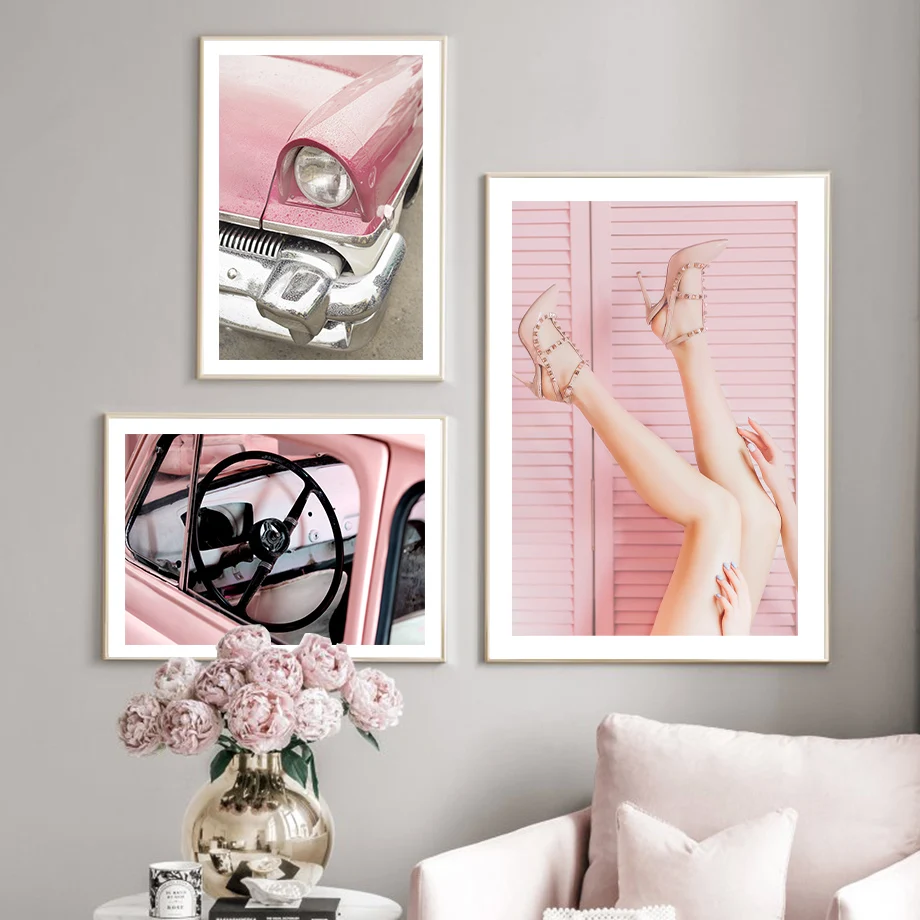 Розовый цветок Бегония Ретро автомобильный велосипед пейзаж скандин...