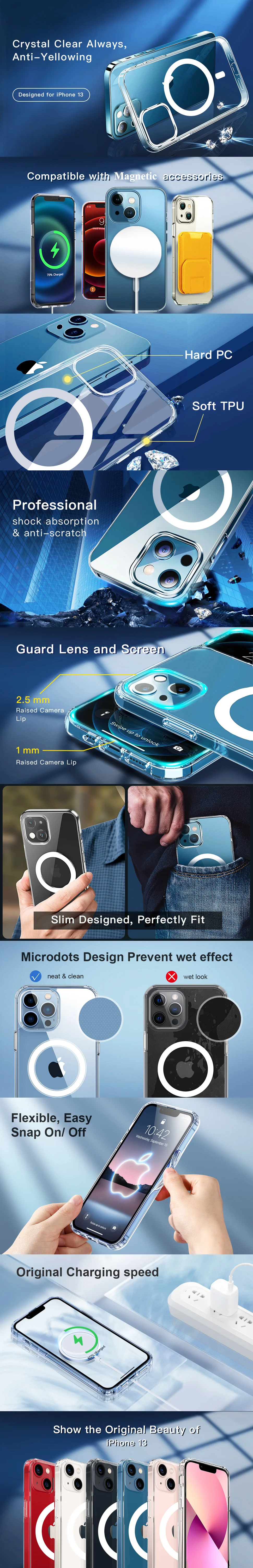 Магнитный чехол для телефона с беспроводной зарядкой, прозрачный чехол для iPhone 13 12 Pro Max 12 mini 2021, прозрачный противоударный чехол