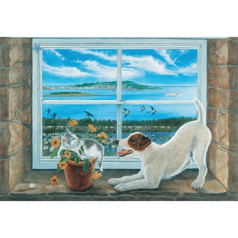 5D DIY Алмазная Картина милый кот Алмазная вышивка окно Пейзаж Вышивка крестом полный квадратный круглый дрель ремесла домашний Декор подарок