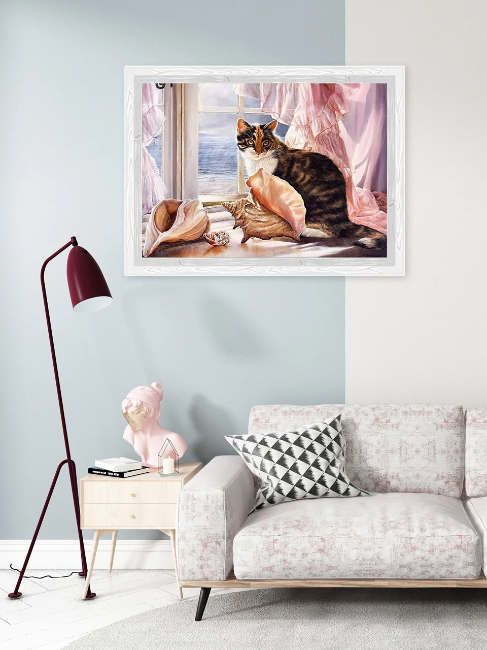 5D алмазная живопись сделай сам, милая кошка, алмазная вышивка, окно, пейзаж, вышивка крестиком, полная квадратная круглая дрель, ремесла, домашний декор, подарок