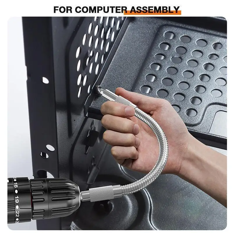 Он может быть подключен к электрической дрели, перезаряжаемой электрической дрели или ручному гаечному ключом, стриктуры, достигает места, чтобы скрутить винт и гайку, что другие дрели не могут приехать.