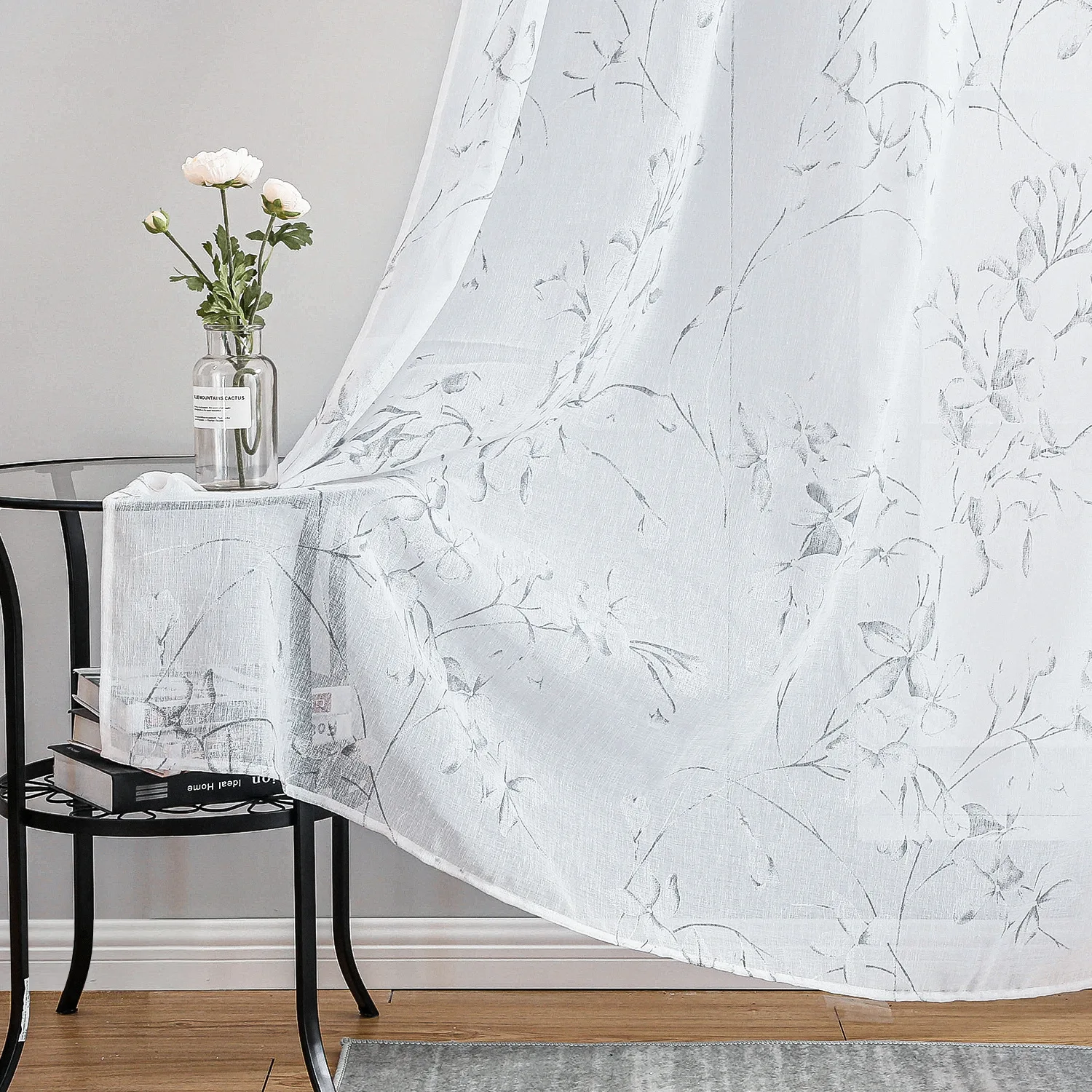 Белые прозрачные шторы для гостиной, серые тюлевые шторы на окна спальни с узором листьев и цветов, домашний декор, занавески из вуали для кухни