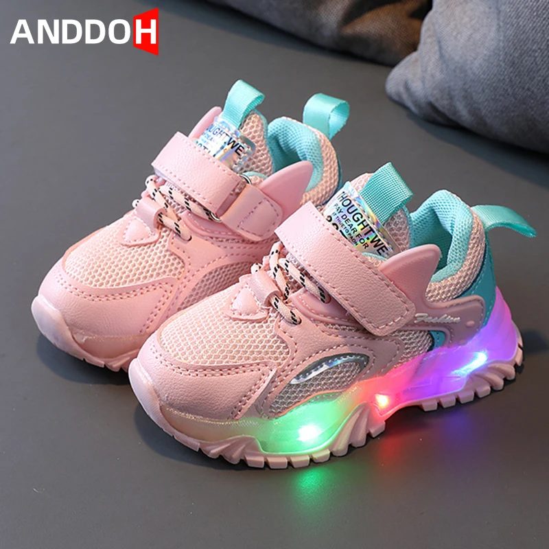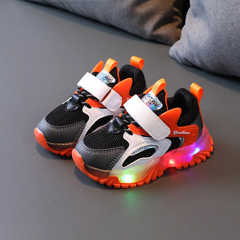 Детские светящиеся кроссовки, дышащие сетчатые, для мальчиков и девочек, спортивная обувь для начинающих ходить детей, подсвеченные беговые кроссовки, размеры 21-30