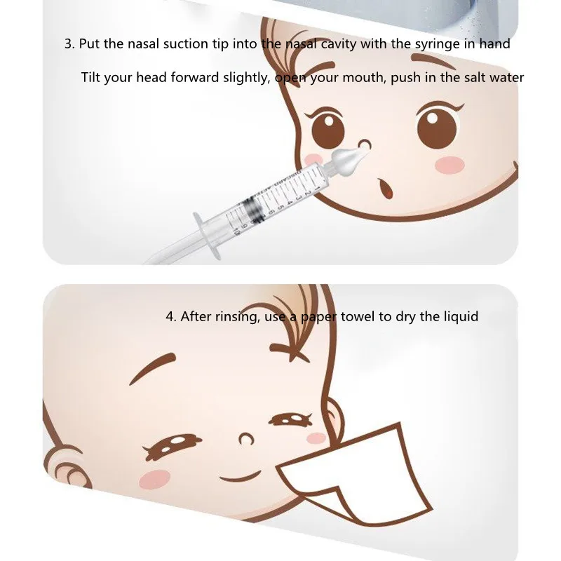 Головка изготовлена из силикона, поэтому вам не придется беспокоиться о вреде носовой полости вашего ребенка. Вы можете очистить носовую полость вашего ребенка, вдыхая соленую воду игольчатой трубкой и прижимая ее к носу ребенка.