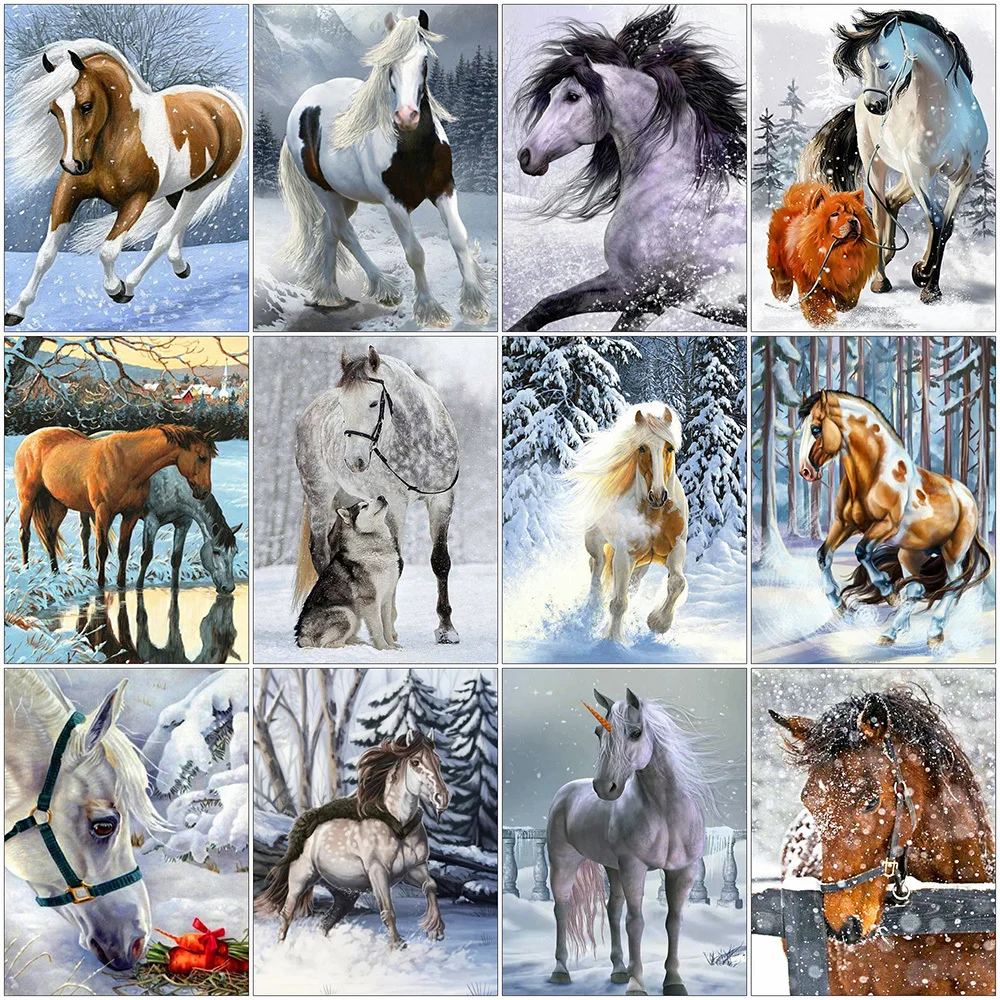 Evershine Алмазная вышивка Лошадь Новое поступление полная площадь Круглый Алмазная мозаика зима вышивка крестом наборы хобби и рукоделие Алмазная Живопись животное Украшение дома