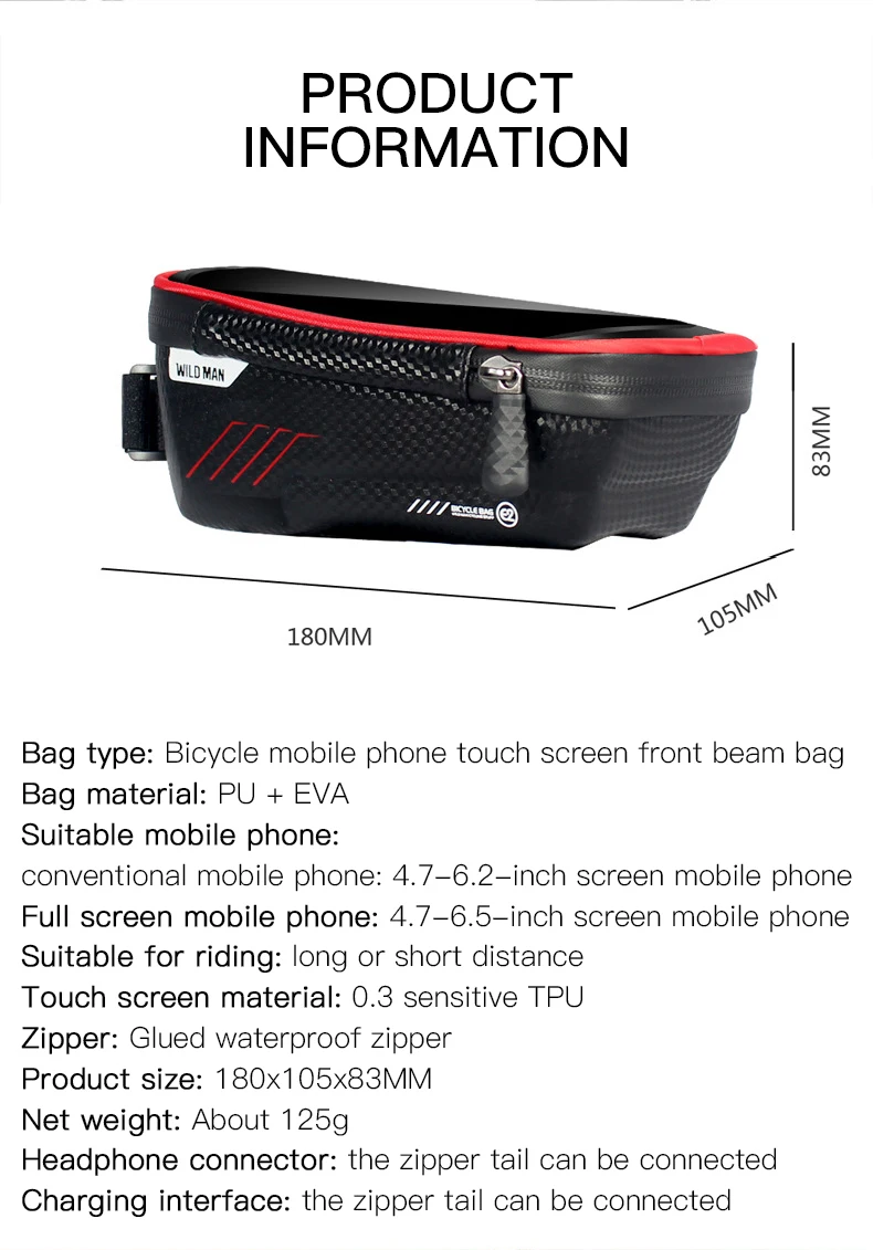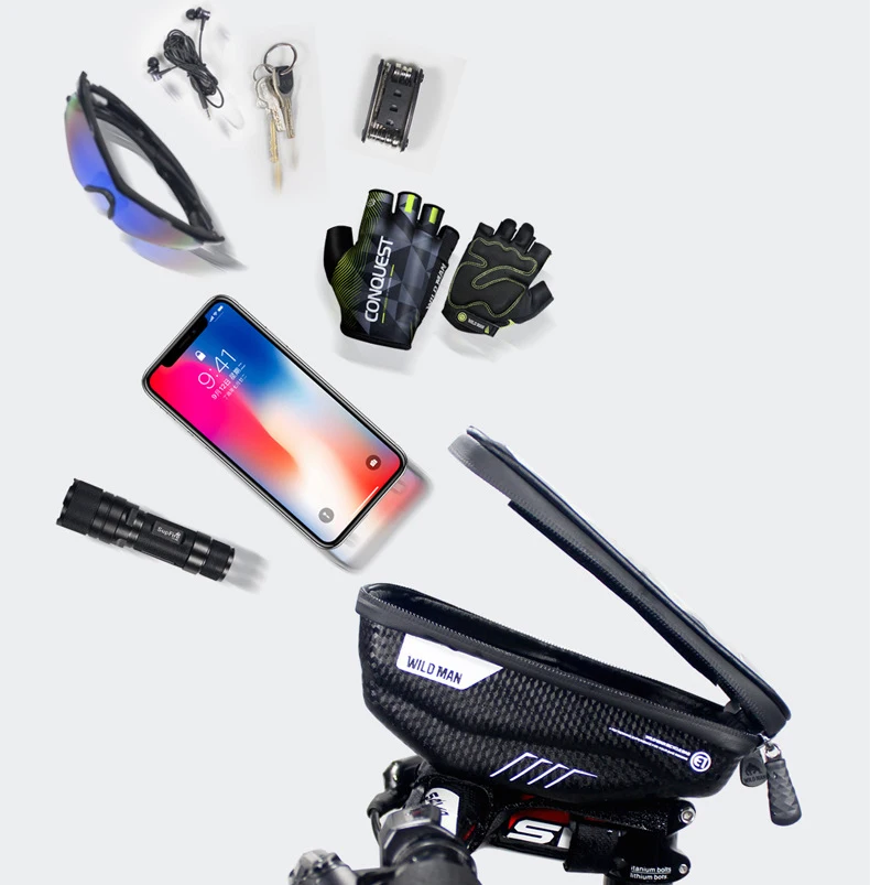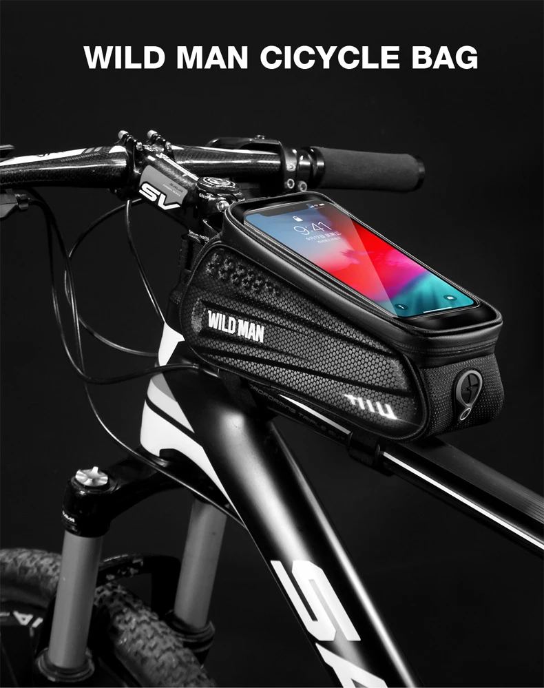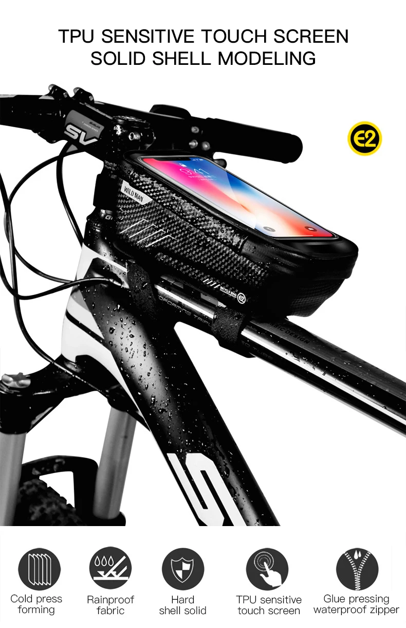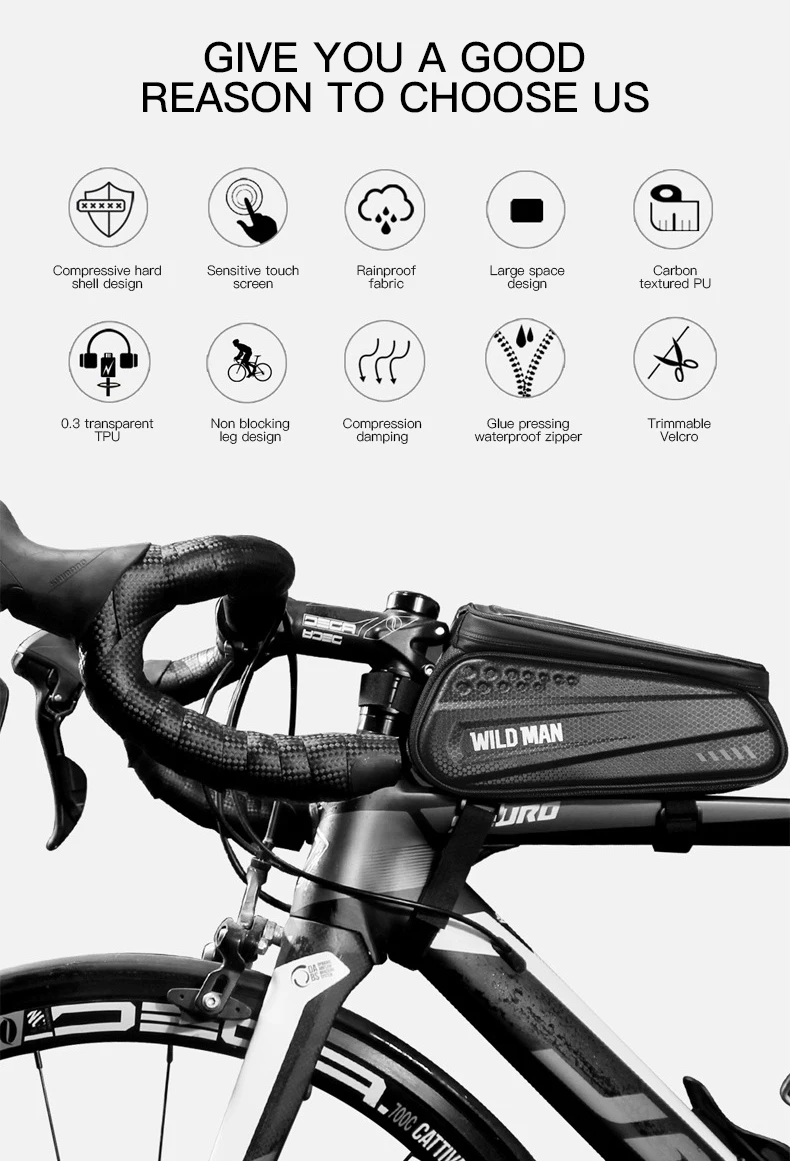 Новинка, велосипедная сумка WILD MAN, рама, передняя Верхняя велосипедная сумка, водонепроницаемая, диаметром дюйма, сумка для сенсорного экрана, сумка для горного велосипеда, велосипедные аксессуары