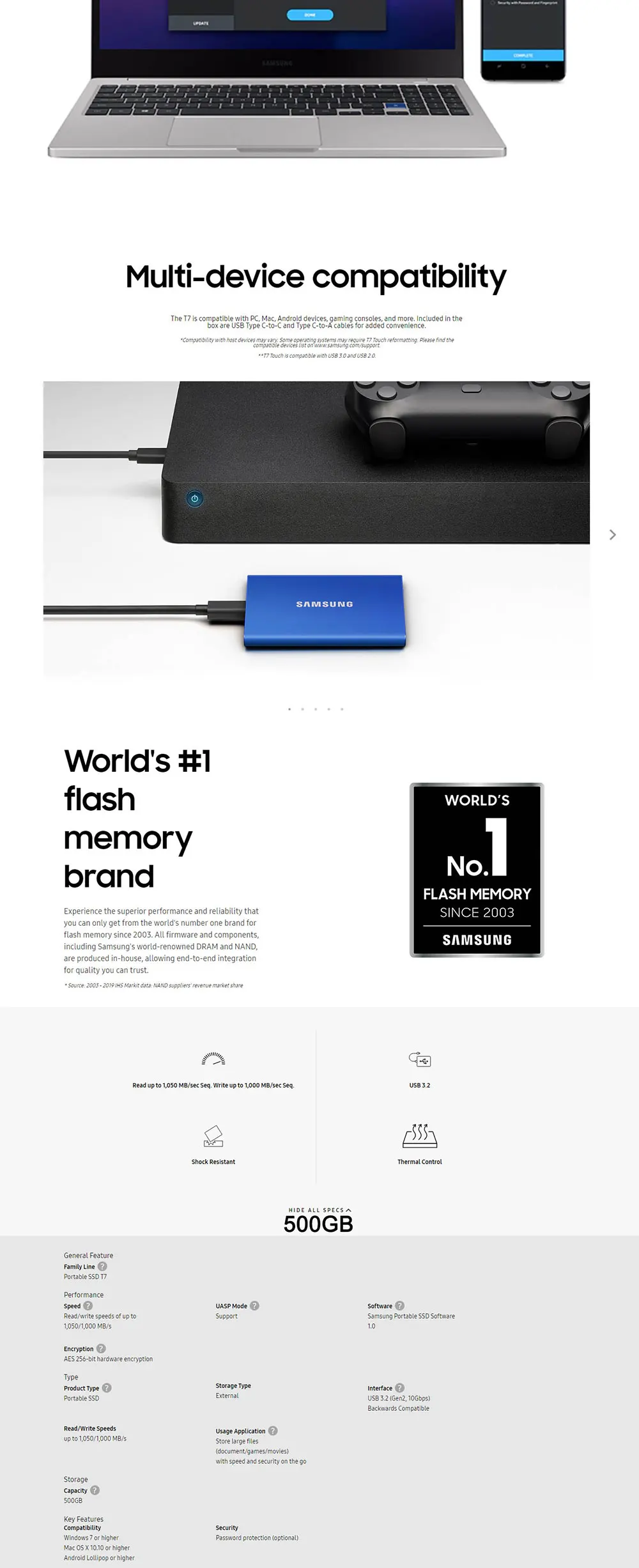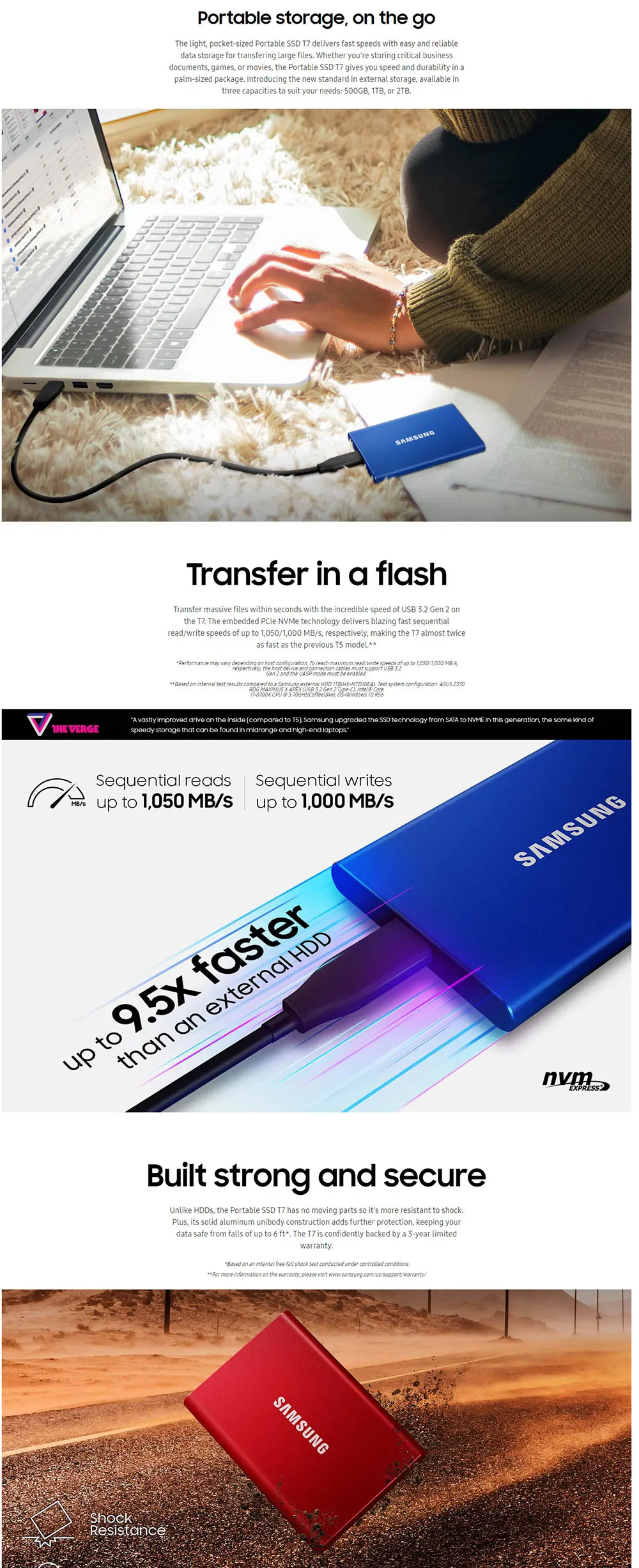 Портативный твердотельный накопитель SAMSUNG T7, 500 Гб, 1 ТБ, USB ...