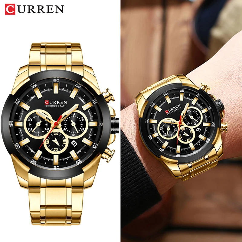 CURREN Новинка Топ Модные Повседневные часы из нержавеющей стали Мужские кварцевые наручные часы с хронографом деловые часы светящиеся часы мужские