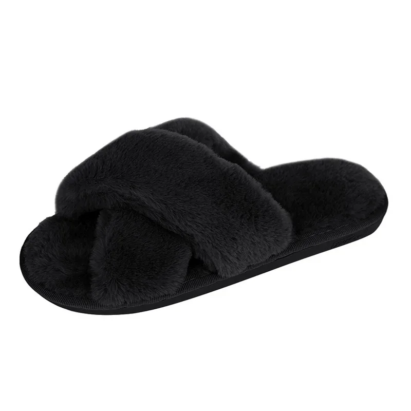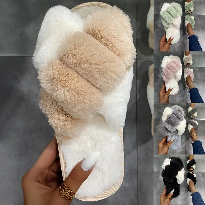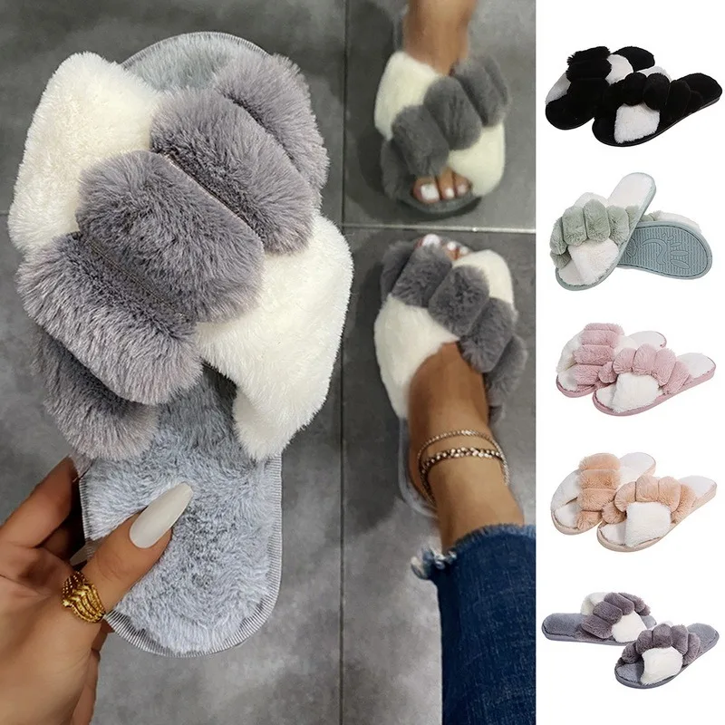 Зимние женские меховые тапочки, мягкая плюшевая обувь из искусственного меха, женские домашние сандалии на платформе с открытым носком, пушистые сланцы для дома