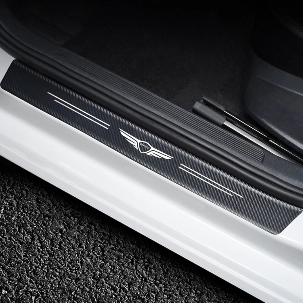 4 шт., автомобильная наклейка на порог из углеродной кожи для Hyundai GENESIS g80 g70 g90 gv80, аксессуары для стайлинга автомобиля