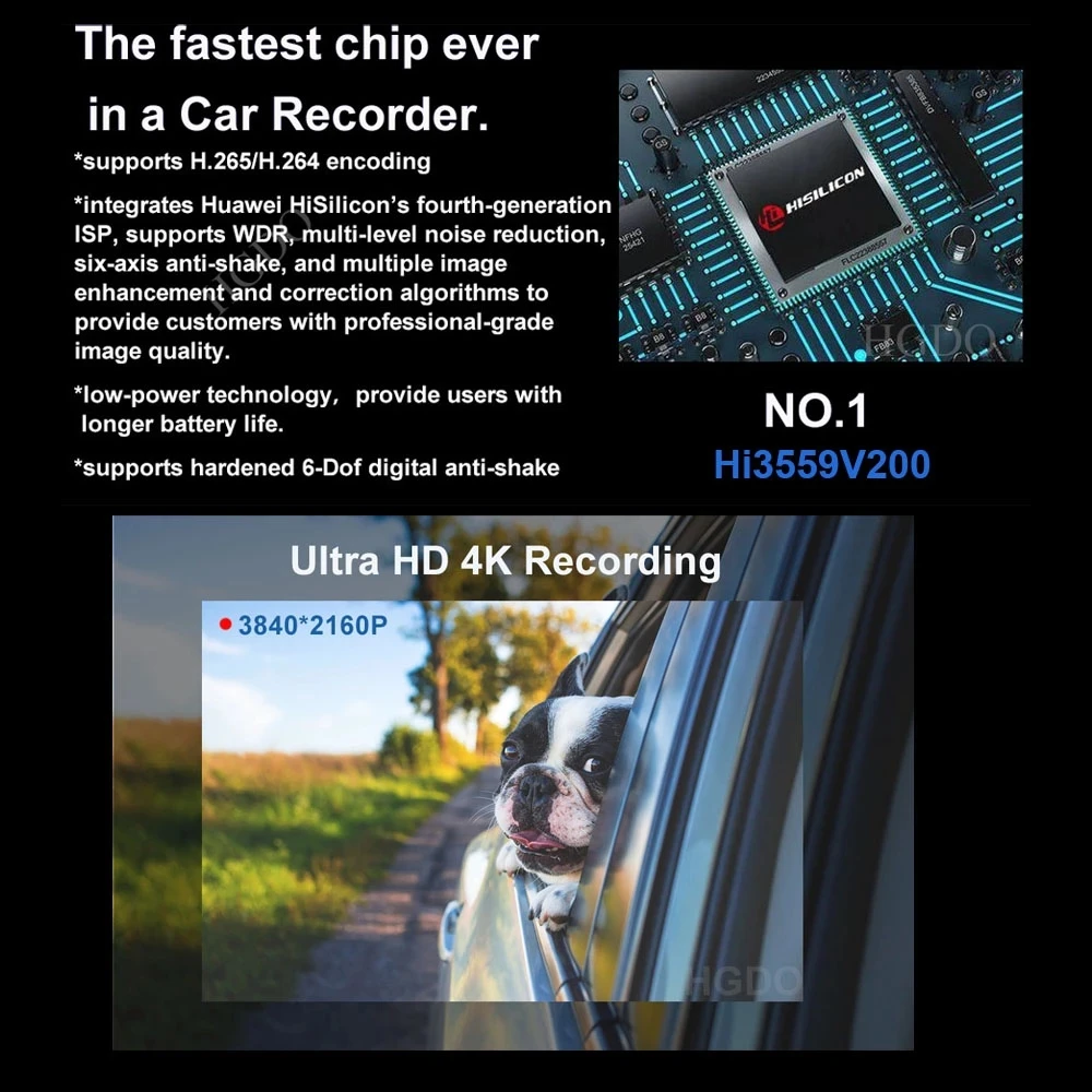 Чип Hisilicon HuaweiЧип поддерживает кодек H.265/H.264Он интегрирует ISP четвертого поколения Huawei HiSilicon, поддерживает WDR, Многоуровневое шумоподавление, шесть осей анти-встряхивание и несколько алгоритмов улучшения и коррекции изображения, чтобы предоставить клиентам профессиональное качество изображения.Воспользуйтесь передовыми низкомощными технологиями и низкомощной архитектурой, чтобы обеспечить пользователям более длительный срок службы батареи.Примечание: на рынке есть много поддельных чип HiSilicon 4K камер, пожалуйста, нажмите версию в меню, чтобы проверить.