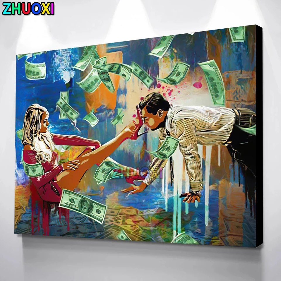 Плакат с монетами и долларами 5d сделай сам, алмазная живопись, сексуальная женщина и мужчина, алмазная полноразмерная круглая вышивка, Алмазная мозаика, подарок