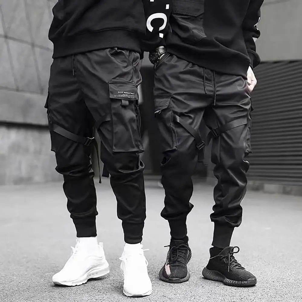 Брюки-карго мужские на завязках, модные штаны-карго с множеством карманов, с ремешком на щиколотке, длинные штаны