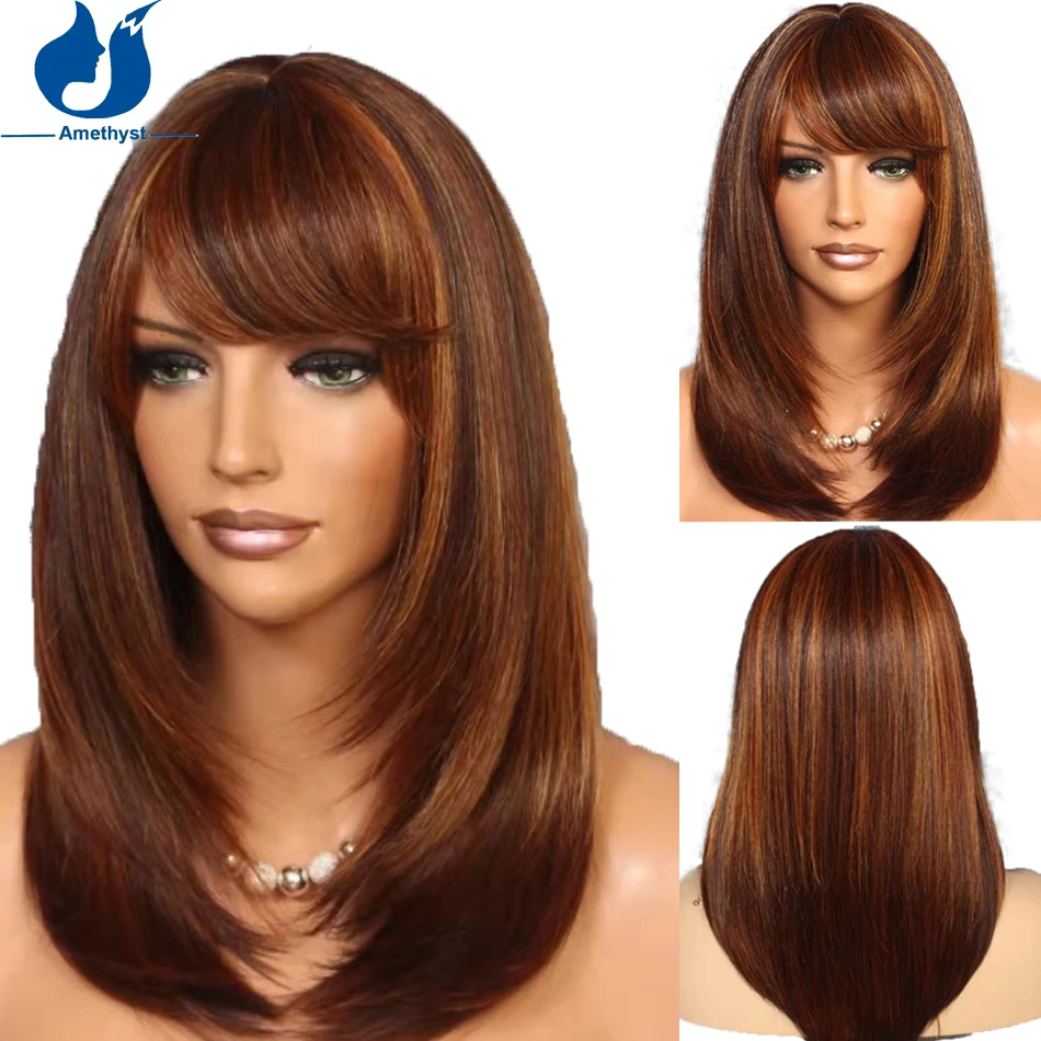 Парики из человеческих волос с челкой, светлые цвета, кружевные фронтальные парики, бразильские волосы Remy